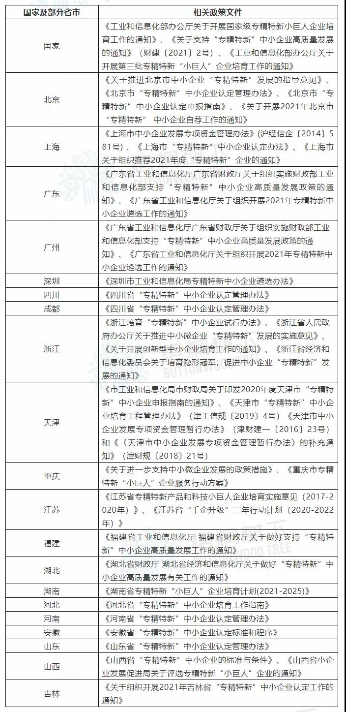 2021年1月23日,財政部、工業(yè)和信息化部聯(lián)合印發(fā)《關(guān)于支持“專精特新”中小企業(yè)高質(zhì)量發(fā)展的通知》,啟動中央財政支持“專精特新”中小企業(yè)高質(zhì)量發(fā)展政策。為讓企業(yè)對申報相關(guān)事宜有更深入的了解,現(xiàn)對各地申報認(rèn)定“專精特新”政策進(jìn)行匯總。