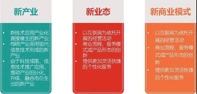 “三新”是新經(jīng)濟的核心特征。中國新經(jīng)濟以新產(chǎn)業(yè)、新業(yè)態(tài)、新商業(yè)模式為核心內(nèi)容的經(jīng)濟活動的集合代表,形成了經(jīng)濟全面轉(zhuǎn)型升級的新動能。其中,新產(chǎn)業(yè)是指應用新科技成果、新興技術而形成一定規(guī)模的新型經(jīng)濟活動;新業(yè)態(tài)是指順應多元化、多樣化、個性化的產(chǎn)品或服務需求,依托技術創(chuàng)新和應用,從現(xiàn)有產(chǎn)業(yè)和領域中衍生疊加出的新環(huán)節(jié)、新鏈條、新活動形態(tài);新商業(yè)模式是一種為實現(xiàn)用戶價值和企業(yè)持續(xù)盈利目標,對企業(yè)經(jīng)營的各種內(nèi)外要素進行整合和重組,形成高效并具有獨特競爭力的商業(yè)運行模式。