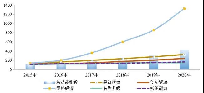 2015-2020年經(jīng)濟發(fā)展新動能指數(shù)及分類指數(shù)