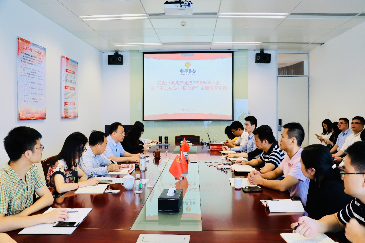 觀看主題電影、奉獻員工愛心、聆聽主題黨課、喜迎黨的生日。建黨98周年之際,廣州國際會客廳——珠江新城西塔內,豐富多彩的紀念活動在廣州南粵基金集團有限公司(簡稱“南粵基金”)接連開展,“紅色基因”融入企業(yè)血脈,“綠色發(fā)展”深植員工心中。