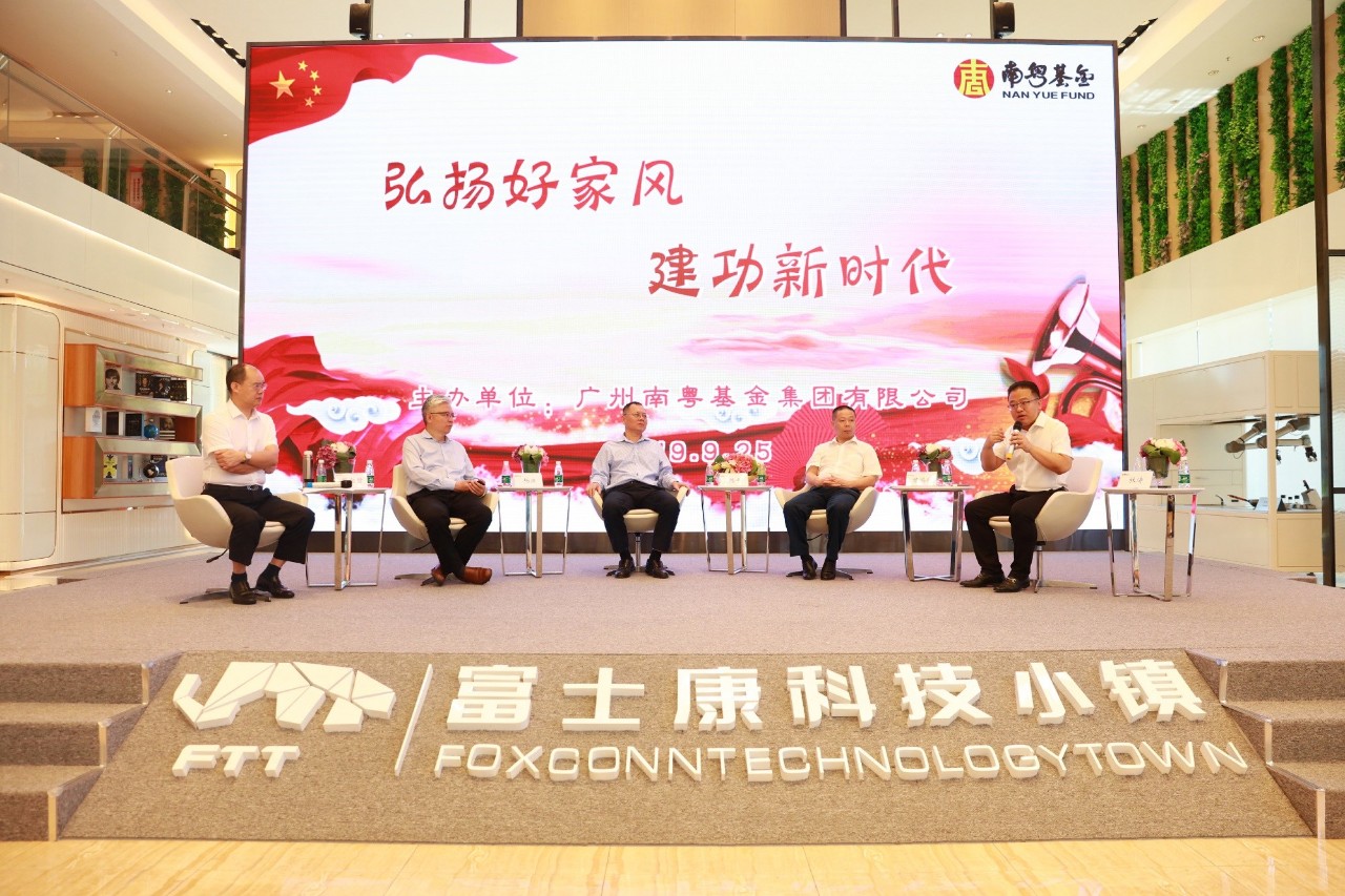 為深入學(xué)習(xí)貫徹習(xí)近平總書記關(guān)于家風(fēng)建設(shè)的重要講話精神,進(jìn)一步弘揚中華民族優(yōu)秀傳統(tǒng)文化,傳播社會主義核心價值觀,助推廣州創(chuàng)建全國文明城市,9月25日,廣州南粵基金集團(tuán)有限公司(簡稱“南粵基金”)在富士康科技小鎮(zhèn)舉辦“弘揚好家風(fēng) 建功新時代”迎國慶70周年主題沙龍活動。廣州市金融監(jiān)督管理局副巡視員陳平、增城區(qū)發(fā)展和改革局局長曾鴻斌、“廣州最美擁軍優(yōu)屬標(biāo)兵”——楊洪先生出席沙龍活動。南粵基金董事長林濤率全體領(lǐng)導(dǎo)班子成員參加活動,南粵基金總裁曾金賢主持沙龍座談。