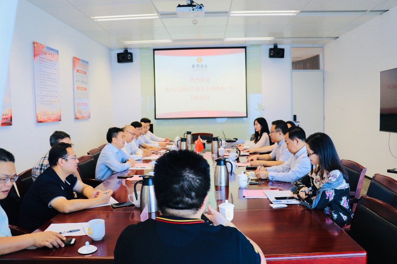 10月17日,湖南衡陽國家高新技術(shù)產(chǎn)業(yè)開發(fā)區(qū)(簡稱“衡陽高新區(qū)”)管委會主任歐杏、衡陽高新投資有限公司董事長朱章金一行到訪廣州南粵基金集團(tuán)有限公司(簡稱“南粵基金”)。南粵基金董事長林濤會見了來訪的客人。雙方就進(jìn)一步深化交流合作舉行會談。