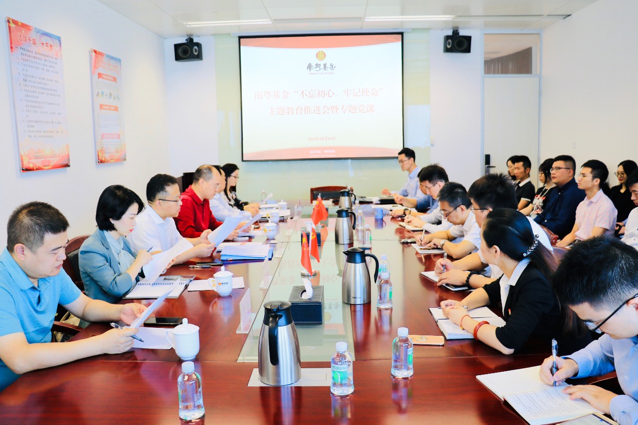 會議深入學(xué)習(xí)習(xí)近平總書記關(guān)于開展主題教育重要講話指示批示精神,對照《南粵基金“不忘初心、牢記使命”主題教育實施方案》開展“回頭看”,并對南粵基金全系統(tǒng)開展第二批主題教育進行再動員再部署。