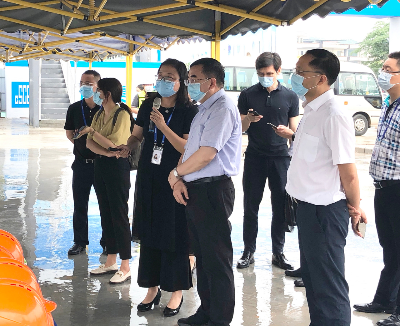 徐金鵬社長一行實地走訪項目建設(shè)工地,聽取關(guān)于項目建設(shè)進展、抗擊疫情和復工復產(chǎn)情況介紹,并重點了解廣州國顯項目成立背景、產(chǎn)業(yè)布局意義、產(chǎn)能規(guī)劃和市場前景。