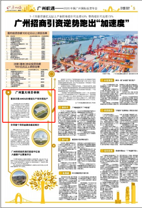 今年投資年會簽約項目達266個,簽約的重大項目協(xié)議總投資額達6540億元,主要集中在新一代信息技術、數(shù)字經(jīng)濟、金融服務以及文化旅游等領域,其中包括廣州南粵基金集團有限公司(簡稱“南粵基金”)投資并提供綜合金融服務的廣州國顯科技有限公司(簡稱“廣州國顯”)項目。本次年會上,廣州國顯作為廣州市重點招商引資項目向全球推介,列入廣州國際投資年會會刊,受到主流媒體廣泛關注。