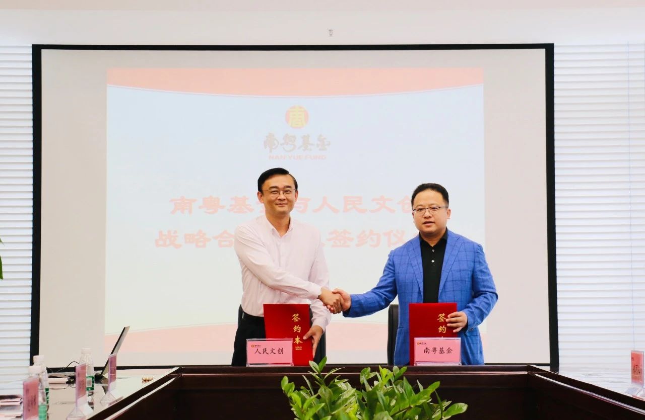 10月30日,廣州南粵基金集團有限公司(簡稱“南粵基金”)與人民日報旗下文創(chuàng)品牌“人民文創(chuàng)”在廣州正式簽署合作協議。南粵基金董事長林濤、人民文創(chuàng)(北京)文化發(fā)展有限公司總經理仇炳剛共同出席簽約儀式。