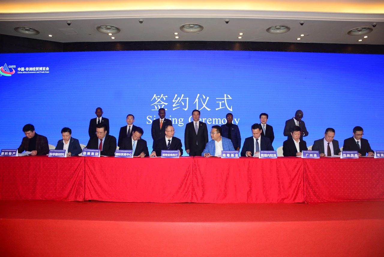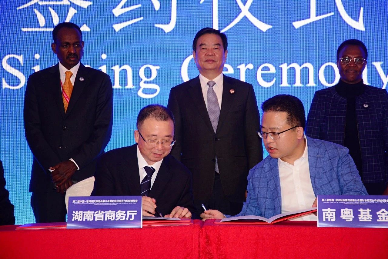 11月5日,第三屆中國國際進(jìn)口博覽會期間,由商務(wù)部和湖南省人民政府主辦的“第二屆中國-非洲經(jīng)貿(mào)博覽會推介會暨對非經(jīng)貿(mào)合作機(jī)制對接會”在上海成功舉行。在湖南省副省長何報翔、商務(wù)部西亞非洲司一級巡視員謝亞靜、商務(wù)部外貿(mào)發(fā)展局局長吳政平、湖南省政府副秘書長陳獻(xiàn)春、湖南省商務(wù)廳廳長徐湘平等領(lǐng)導(dǎo)和嘉賓見證下,廣州南粵基金集團(tuán)有限公司(簡稱“南粵基金”)董事長林濤與湖南省商務(wù)廳副廳長李心球代表雙方簽約,共同推動中非在貿(mào)易、農(nóng)業(yè)、制造業(yè)、服務(wù)業(yè)、金融業(yè)以及基礎(chǔ)設(shè)施等領(lǐng)域深入合作,助力打造中非經(jīng)貿(mào)深度合作先行區(qū)。