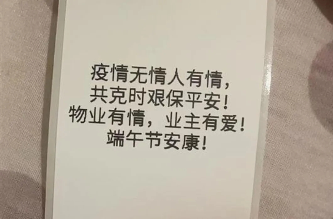 為了保證食品安全,劉燕特地采購了密封袋、封口機器、標(biāo)簽打印機,做了暖心的包裝?!棒兆语h香贈鄰里,居家過節(jié)倍溫馨,守望相助共防疫,業(yè)管一家齊歡慶”“物業(yè)有情,業(yè)主有愛!端午節(jié)安康!”簡簡單單的標(biāo)簽上是質(zhì)樸的鼓勵和祝福。疫情之下,“端午安康”這句祝福更顯真切。