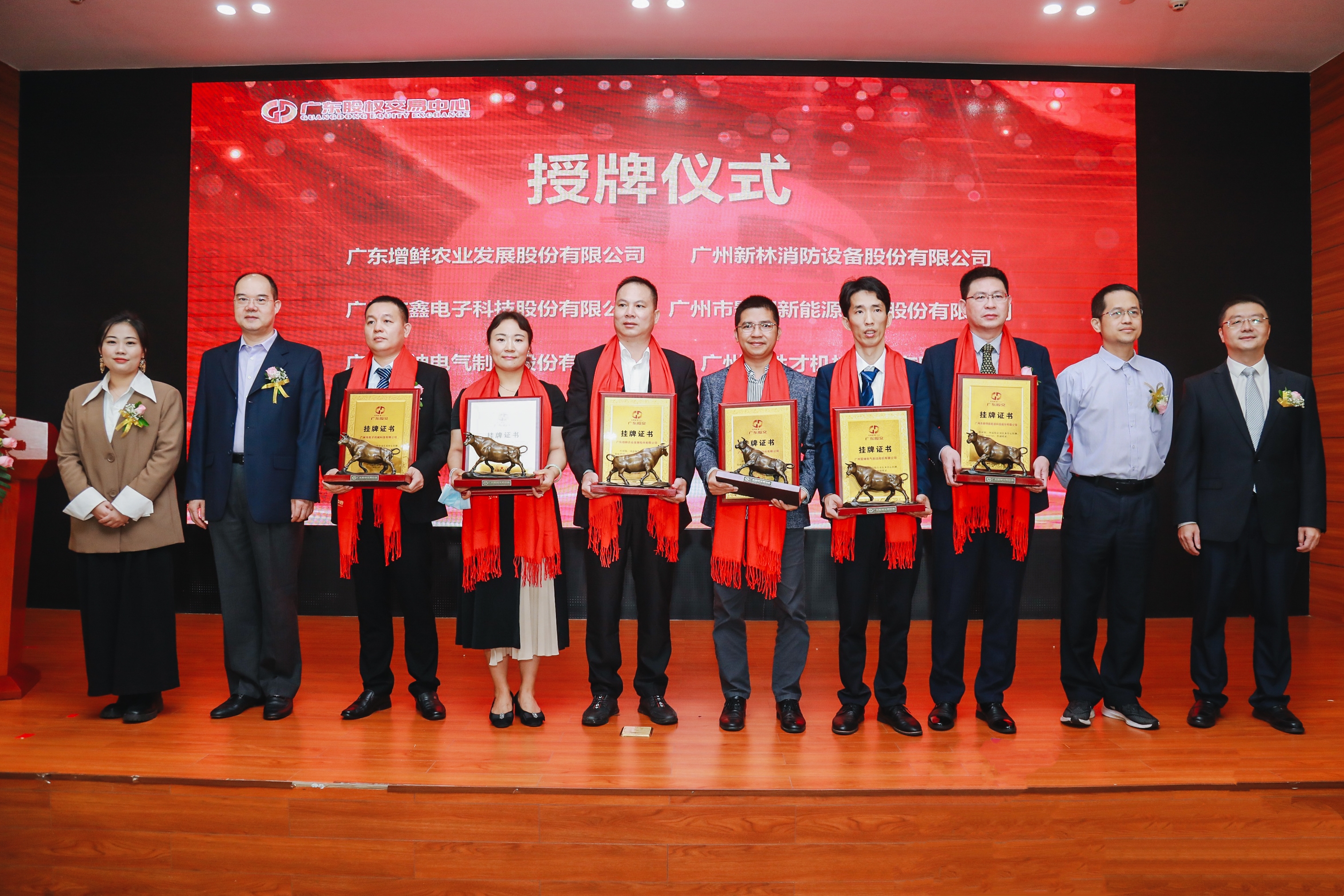 活動現(xiàn)場,曾金賢總裁與許松輝副局長、李潤才副總經(jīng)理、楊聲霖執(zhí)行董事等,共同為廣東文龍化工股份有限公司等12家企業(yè)頒發(fā)掛牌證書并贈送紀念銅牛,并見證掛牌企業(yè)敲鐘鳴鑼向資本市場邁出第一步。增城區(qū)發(fā)改局、南粵國投分別做了資本市場相關(guān)政策解讀和融資產(chǎn)品介紹主題演講。