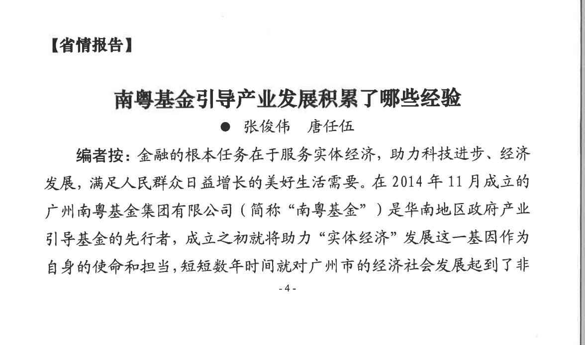 《廣東省情內(nèi)參》:南粵基金引導(dǎo)產(chǎn)業(yè)發(fā)展積累了哪些經(jīng)驗?