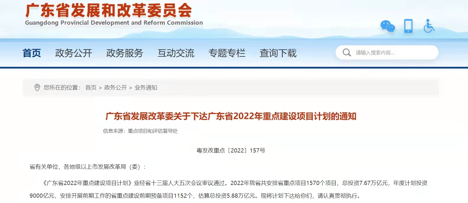 2022年是“十四五”承上啟下的重要一年。立足新發(fā)展階段,貫徹新發(fā)展理念,構(gòu)建新發(fā)展格局,推動高質(zhì)量發(fā)展,廣東正聚焦重點領(lǐng)域充分發(fā)揮投資關(guān)鍵作用,統(tǒng)籌新型基礎(chǔ)設(shè)施和傳統(tǒng)基礎(chǔ)設(shè)施建設(shè),加快建設(shè)現(xiàn)代產(chǎn)業(yè)體系,加強民生保障,統(tǒng)籌推進全局性、基礎(chǔ)性、戰(zhàn)略性的重點項目建設(shè),為高質(zhì)量構(gòu)建“—核一帶一區(qū)”區(qū)域發(fā)展格局打牢基礎(chǔ)、增強動力,確保國家和省“十四五”規(guī)劃落地實施。