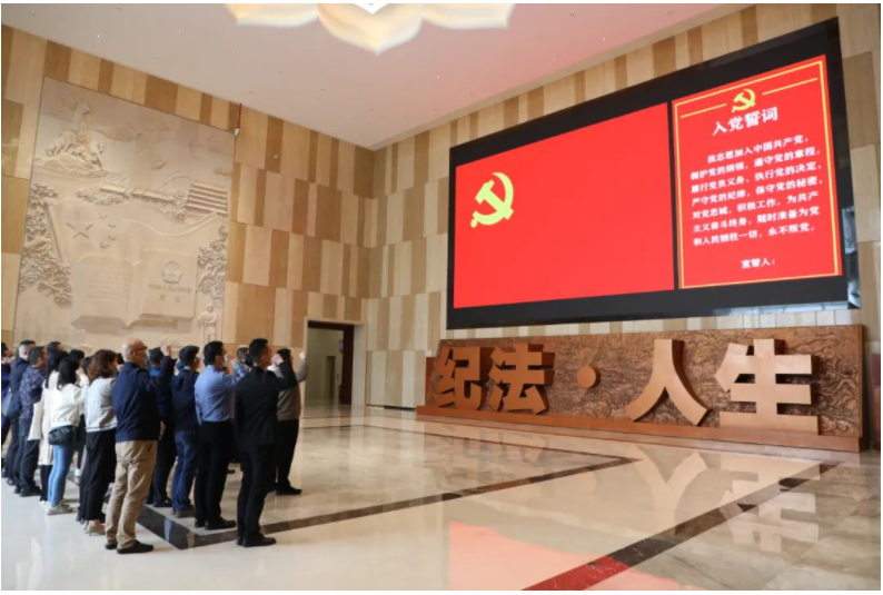 “我志愿加入中國(guó)共產(chǎn)黨,擁護(hù)黨的綱領(lǐng),遵守黨的章程……”在鮮紅的黨旗前,全體人員整齊列隊(duì),莊嚴(yán)肅立,重溫入黨誓詞,隨后依次參觀了“源流紀(jì)法”“正視紀(jì)法”“知行紀(jì)法”“鏡鑒紀(jì)法”“尊崇紀(jì)法”“抉擇紀(jì)法”等六大展區(qū),在正面典型和反面警示的鮮明對(duì)比中,黨員干部深入了解中華紀(jì)法文化源遠(yuǎn)流長(zhǎng),深刻感悟中國(guó)共產(chǎn)黨推進(jìn)紀(jì)法建設(shè),扎緊制度藩籬歷久彌堅(jiān),銘記時(shí)刻保持對(duì)紀(jì)法的敬畏心,堅(jiān)決做到廉潔從業(yè),警鐘長(zhǎng)鳴。