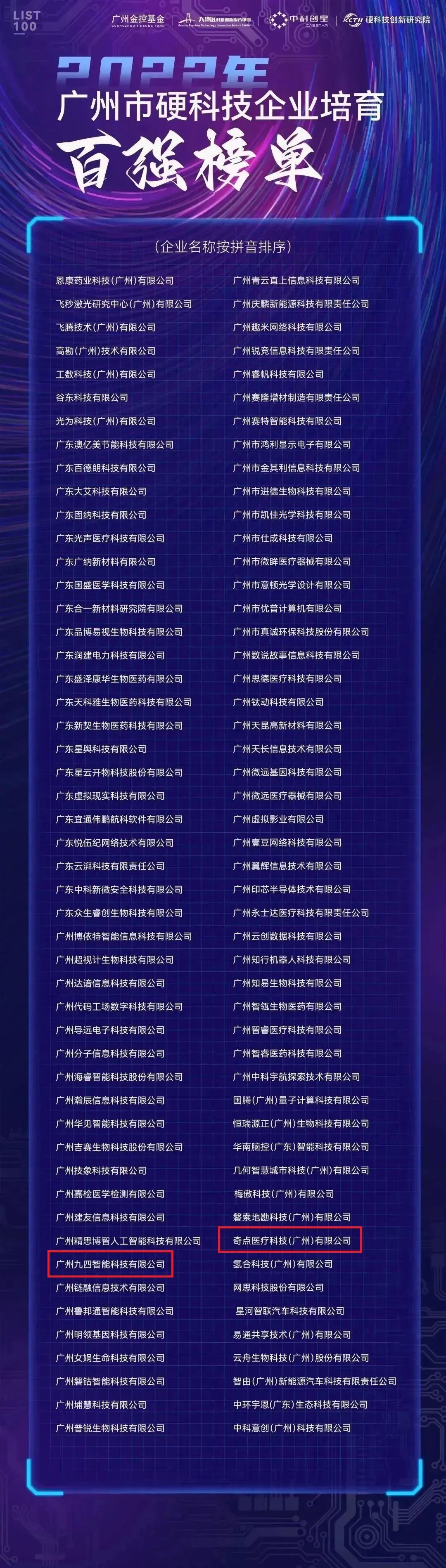2022年8月,廣州市科學技術(shù)局主辦開展了硬科技企業(yè)培育行動,該項行動重點挖掘在穗高校、科研院所、新型研發(fā)機構(gòu)和孵化載體科研成果轉(zhuǎn)化形成的優(yōu)秀硬科技企業(yè),按照扶早、扶小的原則,依據(jù)技術(shù)關(guān)鍵性、技術(shù)原創(chuàng)性說明以及企業(yè)的經(jīng)營狀況、團隊情況、專利數(shù)量等定性或定量指標,遴選了100家發(fā)展態(tài)勢良好、爆發(fā)性增長潛力強的企業(yè),最終評出“2022年廣州市硬科技企業(yè)培育百強榜單”。