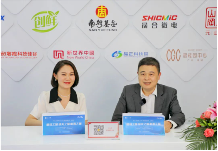 在主會場開幕式,在廣東省副省長張新、廣州市市長郭永航、增城區(qū)區(qū)長霍陽等省市區(qū)領導見證下,南粵基金集團董事長肖磊與廣東省電子集團董事長劉科簽署戰(zhàn)略合作協(xié)議,雙方將共建高端電子薄膜生產制造基地,助力增城區(qū)新一代信息技術產業(yè)延鏈補鏈強鏈。