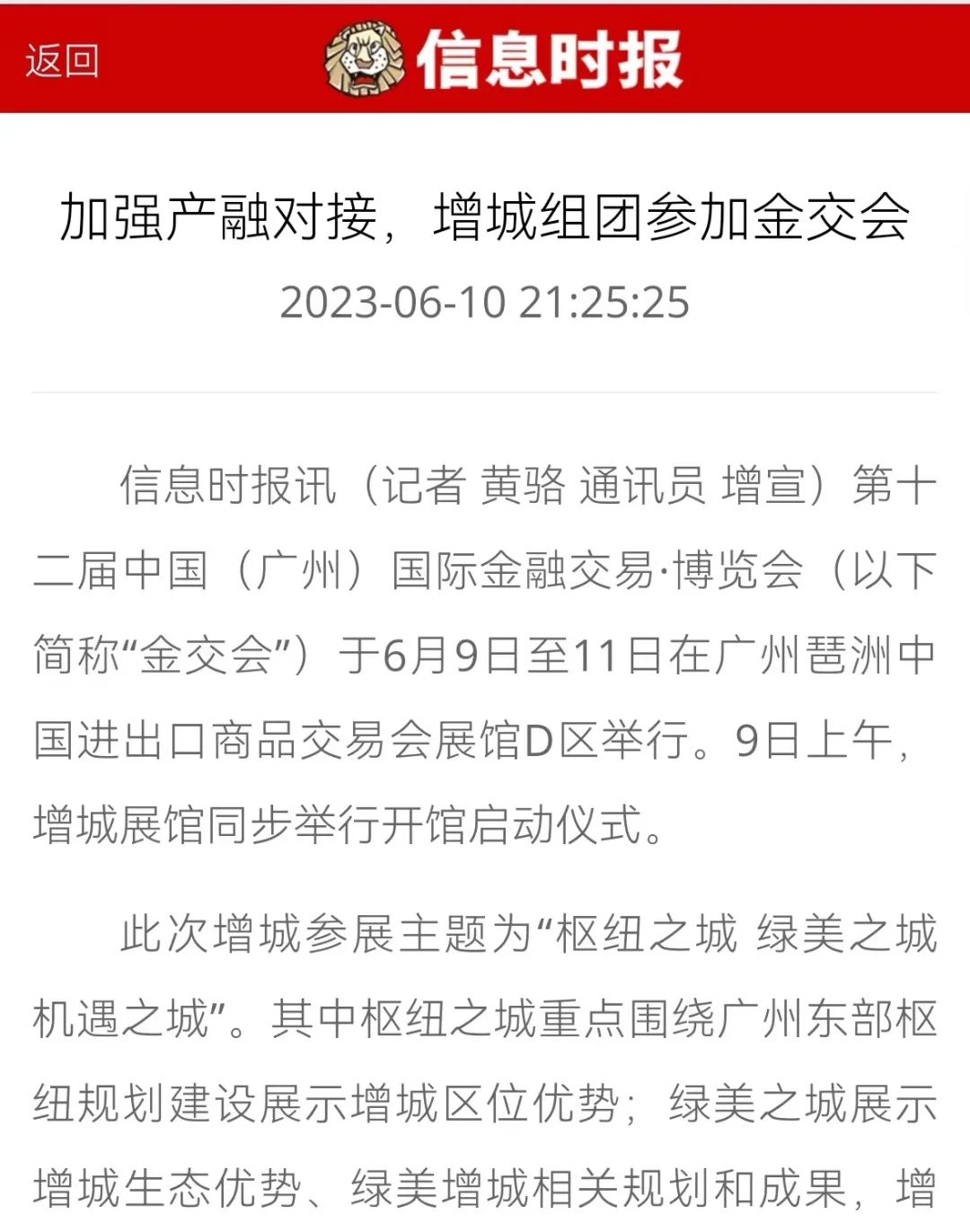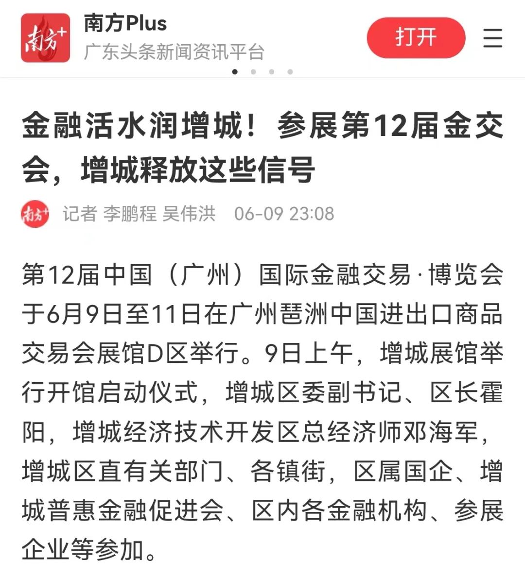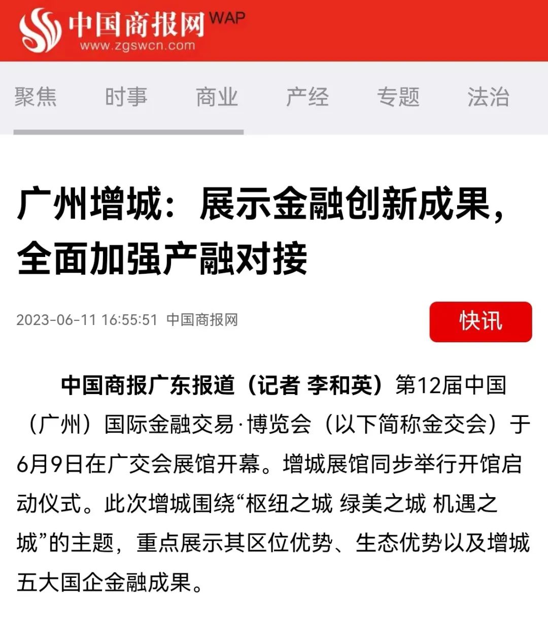 目光向東,增城大有可為!腳步向前,金融大有作為。連日來,增城金融的金交會之旅受到了新華網(wǎng)、中新網(wǎng)、南方日報、廣州日報、21 世紀經(jīng)濟報道等國家省市區(qū)主流媒體廣泛關注、爭相報道!