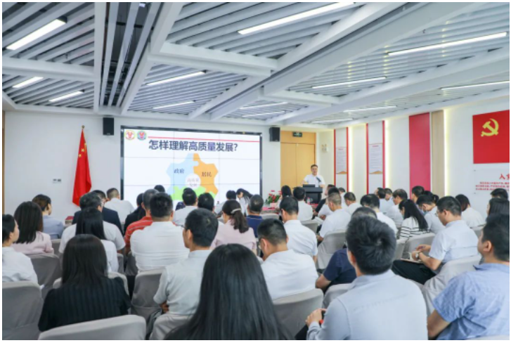 在宣講環(huán)節(jié),廣州市委黨校經(jīng)濟(jì)學(xué)教授吳兆春以《深入學(xué)習(xí)貫徹<習(xí)近平著作選讀>(第一、二卷),著力推動(dòng)高質(zhì)量發(fā)展》為題,闡述了如何牢牢把握高質(zhì)量發(fā)展這個(gè)全面建設(shè)社會(huì)主義現(xiàn)代化國(guó)家的首要任務(wù)。