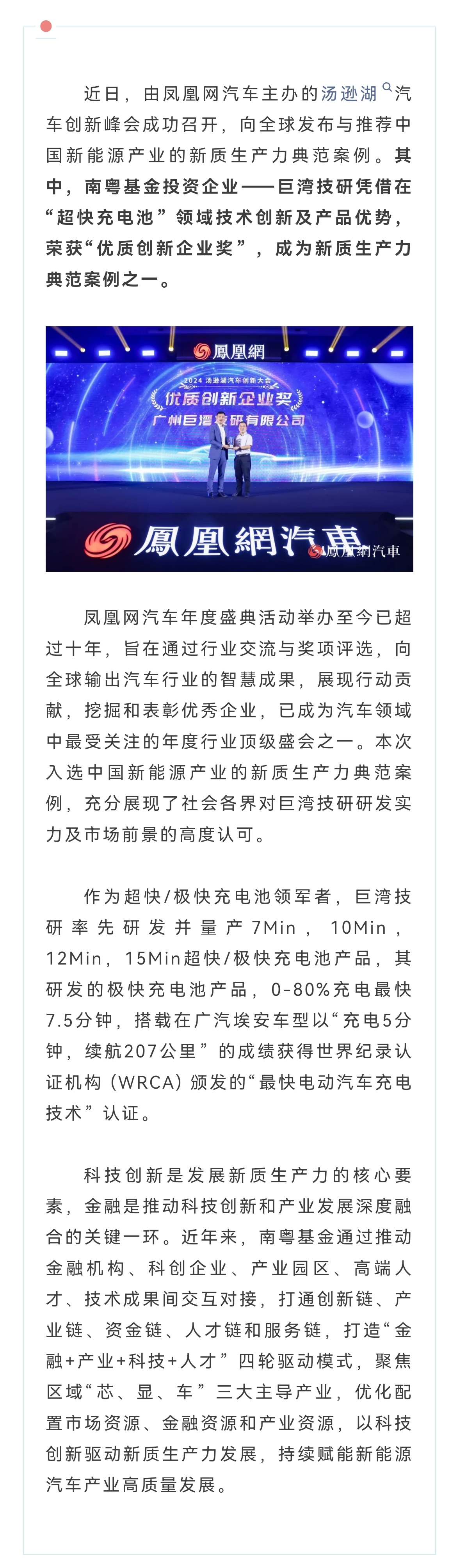 加快培育新質生產力 南粵基金投資企業(yè)榮獲“優(yōu)質創(chuàng)新企業(yè)獎”