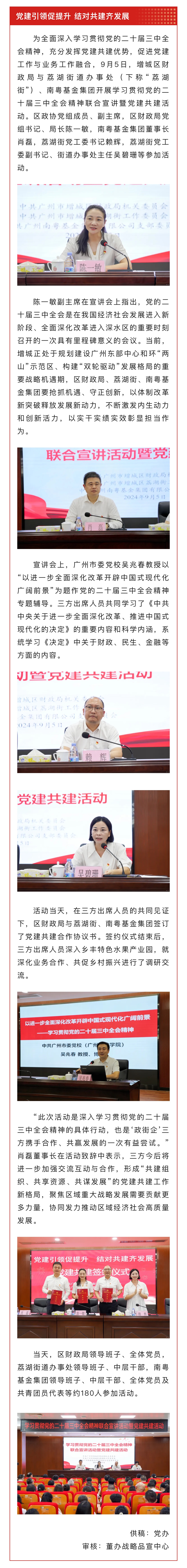 黨建引領(lǐng)促提升 結(jié)對共建齊發(fā)展——區(qū)財政局與荔湖街、南粵基金集團開展學習貫徹黨的二十屆三中全會精神聯(lián)合宣講暨黨建共建活動