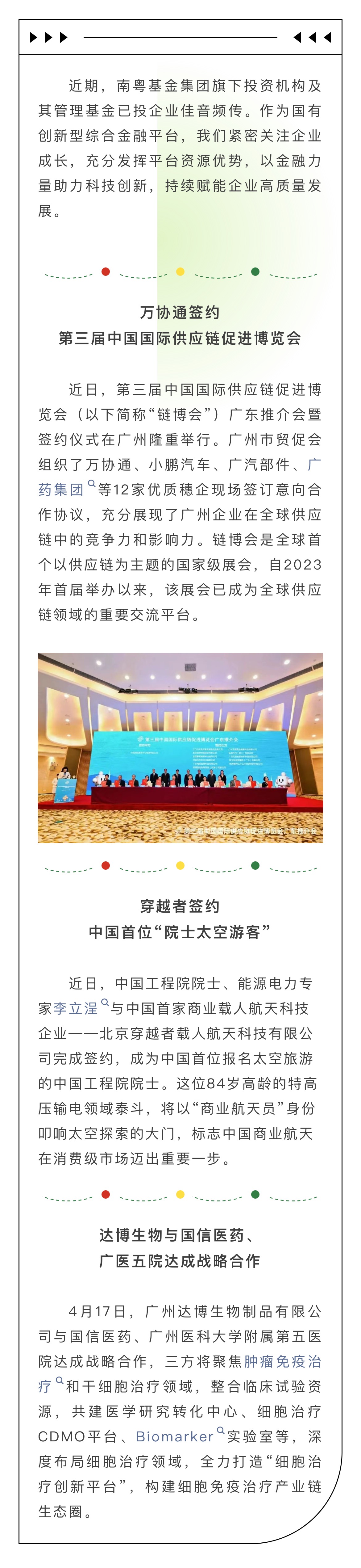 南粵基金,與企業(yè)共成長 | 簽約中國首位“院士太空游客”、國際鏈博會……