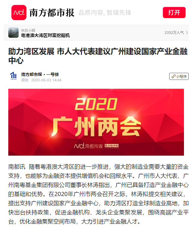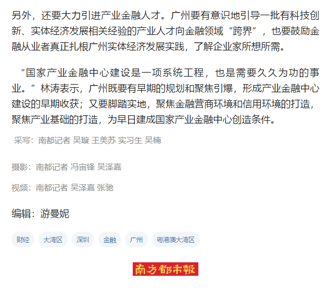 南方都市報(bào)|助力灣區(qū)發(fā)展 市人大代表建議廣州建設(shè)國家產(chǎn)業(yè)金融中心