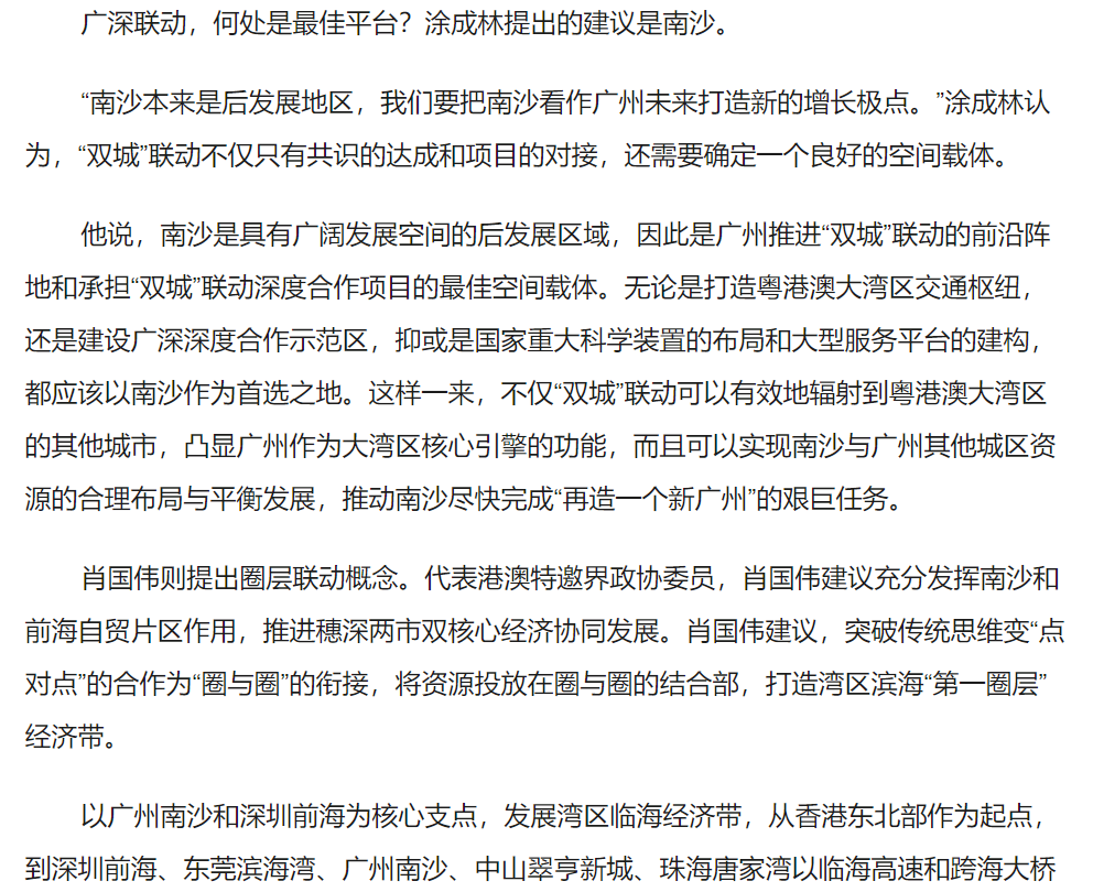 南方日報|代表委員為“雙城”聯(lián)動支招: 廣深聯(lián)手打造灣區(qū)濱海第一圈層經(jīng)濟(jì)帶