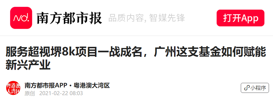南方都市報|服務(wù)超視堺8k項目一戰(zhàn)成名,廣州這支基金如何賦能新興產(chǎn)業(yè)