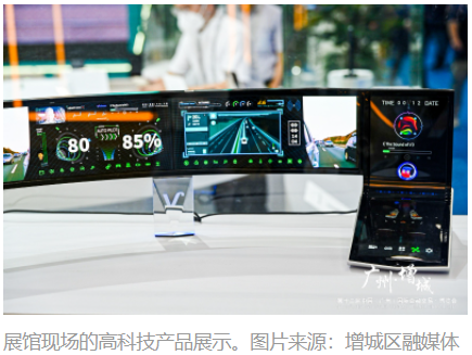 在展館現(xiàn)場,廣州國顯(維信諾)全柔AMOLED模組生產(chǎn)線的12.3英寸柔性AMOLED動態(tài)卷曲全模組、奇點(diǎn)醫(yī)療科技(廣州)有限公司的“無缺血肝臟灌注系統(tǒng)”等高科技產(chǎn)品吸引眾人目光。